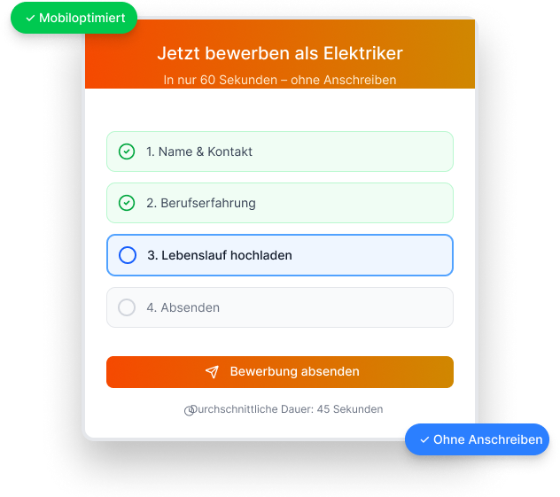 Qualifizierte Fachkräfte erwarten heute einen schnellen, unkomplizierten Bewerbungsprozess. Wer zu lange Formulare hat, verliert die besten Kandidaten an die Konkurrenz.